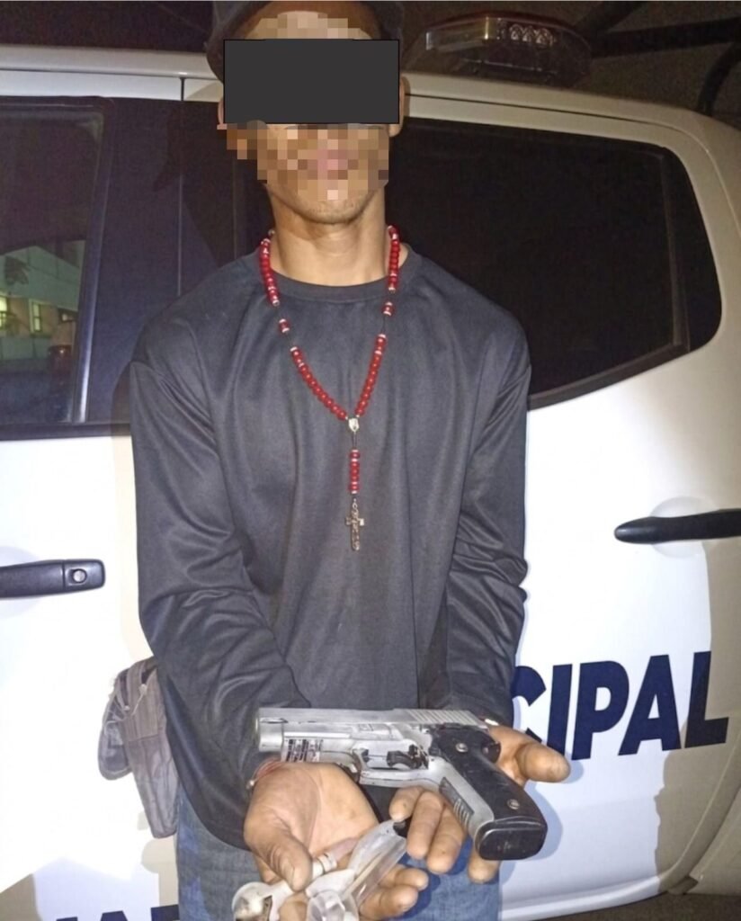 Uruapan, Mich; 18 de marzo del 2026.- Para garantizar la seguridad de la comunidad uruapense, la Policía Municipal de manera coordinada y estratégica con fuerzas federales y estatales, realiza operativos para la disuasión del delito a lo largo y ancho de la ciudad, como resultado, se aseguró a una persona del sexo masculino en posesión de una réplica de arma de fuego y droga.